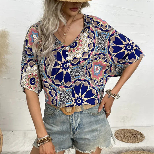 Blue Patterned Flower Shirt