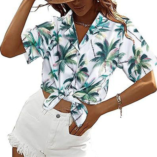Green Palm Trees On White Hawaiian Shirts