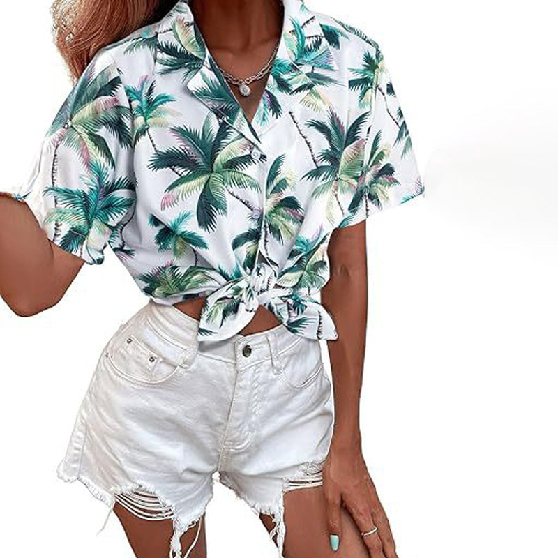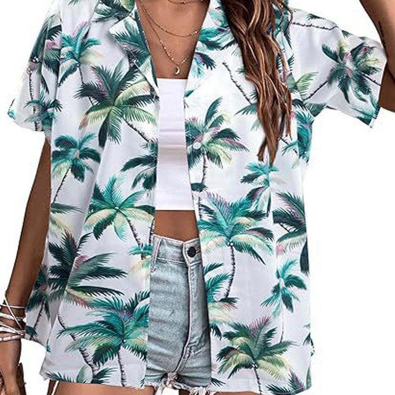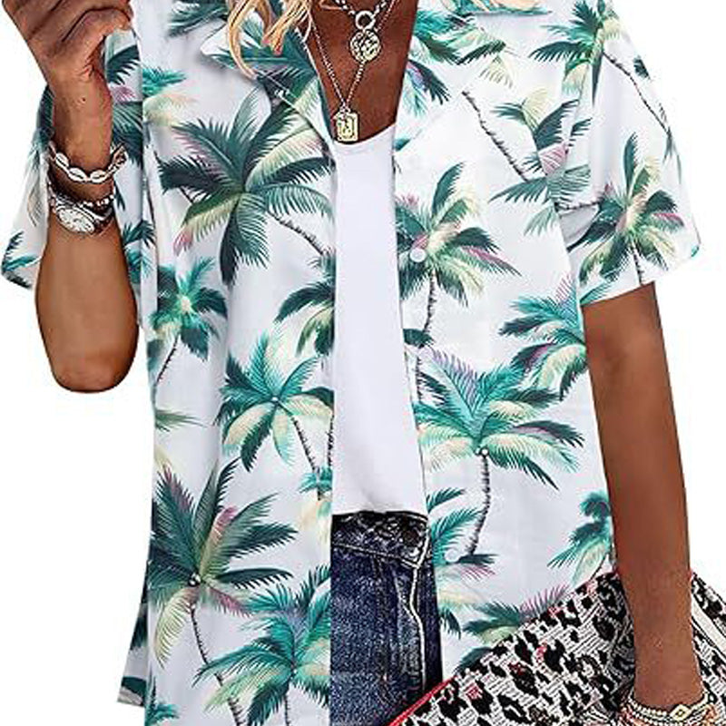Green Palm Trees On White Hawaiian Shirts