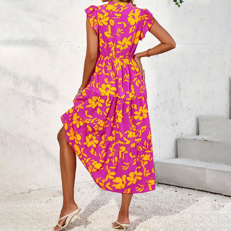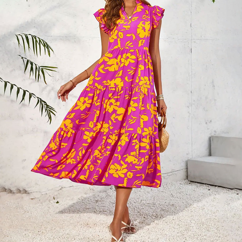 Infuse some feminine elegance into your wardrobe with our Ruffled Shoulder Midi Dress. The ruffled shoulder design adds a touch of playfulness, while the midi length provides a versatile and flattering silhouette. Made with high-quality materials, this dress is both comfortable and stylish. Elevate your look with this must-have piece.